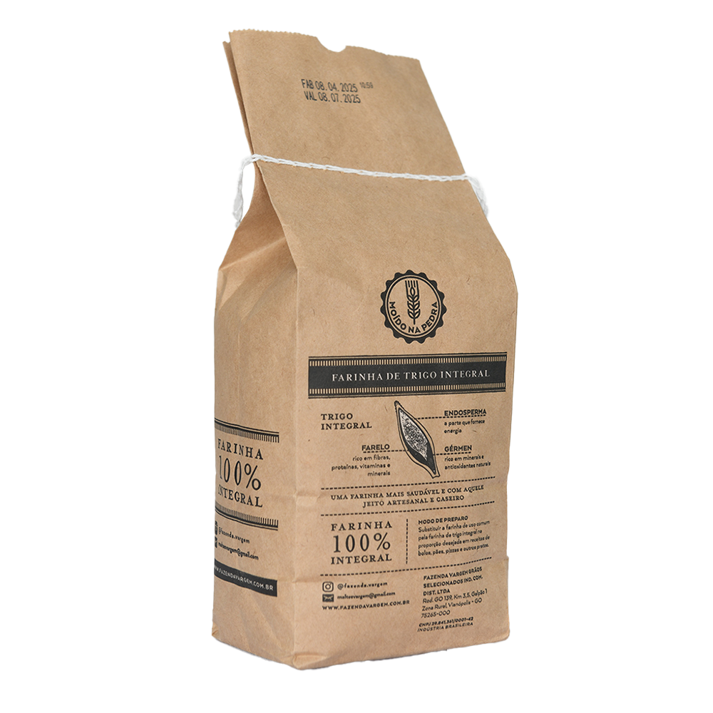 Farinha de Trigo Integral Fazenda Vargem – 1kg: Nutrição e Sabor em Sua Forma Mais Pura A Farinha de Trigo Integral Fazenda Vargem é produzida exclusivamente com grãos de trigo 100% integrais, mantendo todas as partes do grão farelo, gérmen e endosperma para oferecer um alimento completo, rico em fibras e com alto valor nutricional. Ideal para quem busca uma alimentação equilibrada sem abrir mão do sabor e da qualidade.
